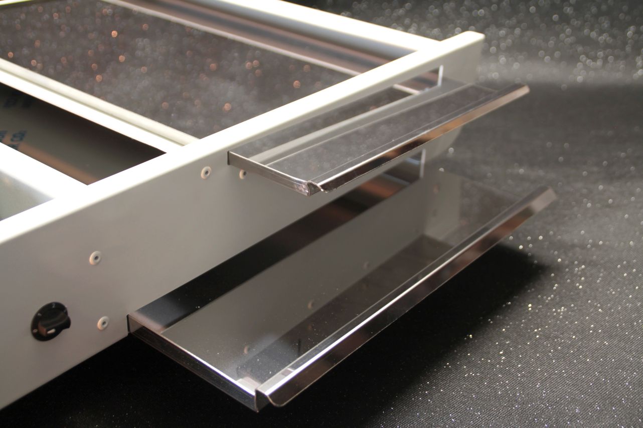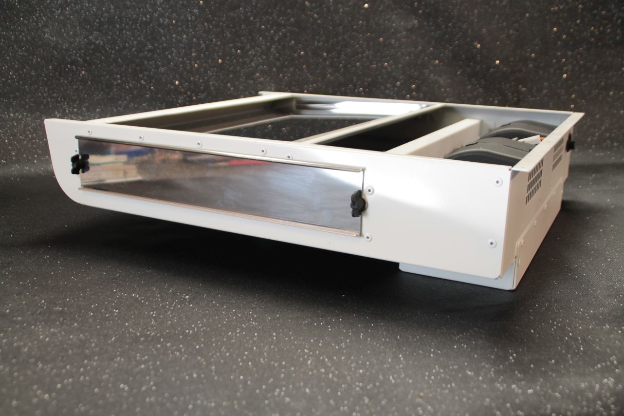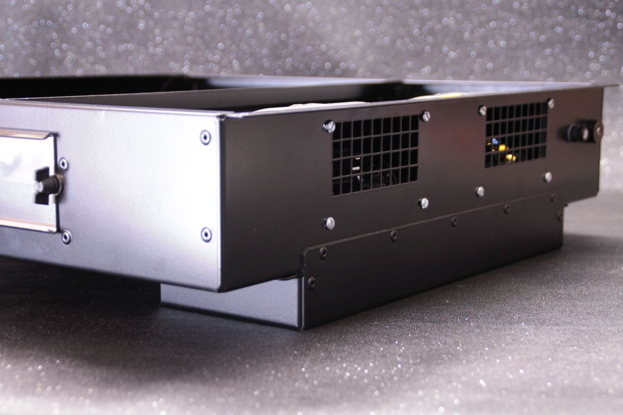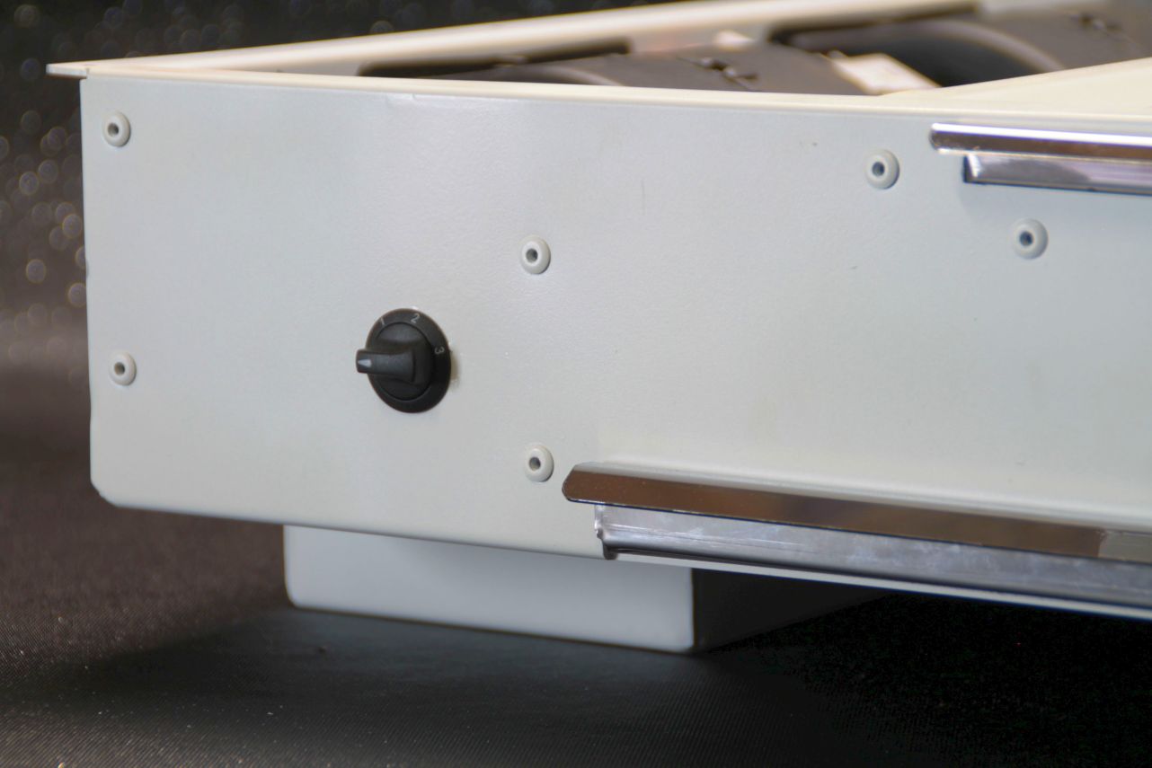 Die Leistung der Anlage kann über einen Drehschalter in 3 Stufen eingestellt werden. Unser empfohlener Arbeitsbereich der Absaugung liegt bei Stufe 1 bzw. 2.